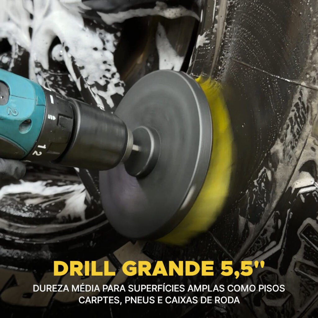 Compatível com furadeiras e parafusadeiras de velocidade ajustável, o kit permite remover sujeira pesada, manchas e incrustações em diferentes superfícies automotivas e residenciais.